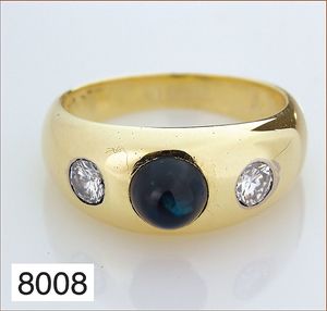 Massiver Ring, GG 585/000, gesamt 9,2 g, 2 Brillanten weiß/SI, gesamt ca. 0,5 ct, feiner Saphircabochon ca. 2 ct, RW ca. 57