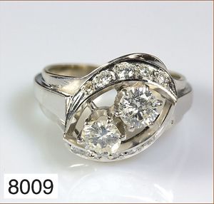 Ring WG 585/000, 2 Brillanten, weiß, SI/P1,gesamt ca. 0,8 ct, Besatzdiamanten gesamt ca. 0,18 ct, RW ca. 50