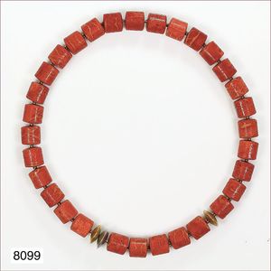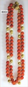Korallenkette, Goldschmiedearbeit, GG 750/000 & Palladium-Linsen und Goldösen, mit Heinz Patenschließe, ca. 50 cm