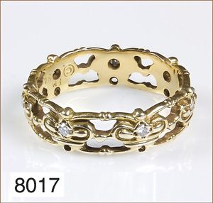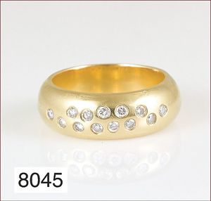 Ring, ausgefallenes Designerstück, GG 585/000, 7 Brillanten, gesamt ca. 0,18 ct, feines weiß/SI, RW 64