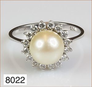 Feiner Perlring, WG 750/000, 16 Brillanten (gesamt ca. 0,32 ct, weiß/SI-P1), RW 57
