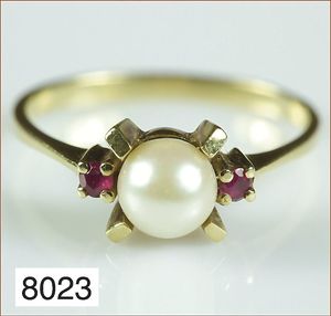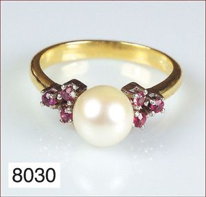 Ring mit Zuchtperle und Rubinen, RW ca. 56