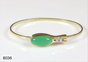 Armreif 585/000 Weißgold mit Chrysopras und Diamanten, insg. 23,9 g