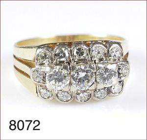 Ring, GG 585/000, 3 Brillanten weiß/VSI- eher besser, gesamt 0,60 ct und 8 Diamanten, gesamt 0,30 ct, gesamt 6,4 g, RW 58