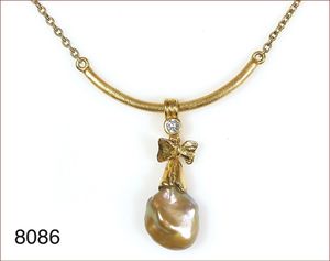 Anhänger GG 585/000 mit Süßwasserperle und Flachpanzerkette GG 585/000 ca. 40 cm, Gesamtgewicht ca. 8,6 g