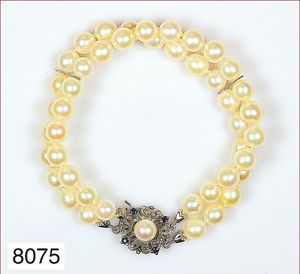 Perlarmband, doppelreihig mit Silberschließe, schönes Lüster, vier blaue Steine, ca. 18 cm
