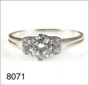 Brillantring, WG 585/000, 1 großer Brillant, 4 kleine Diamanten, sehr sauber getöntes weiß, 0,63 ct graviert, RW 54