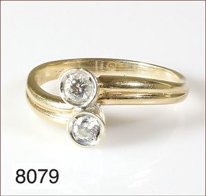 Brillantring, GG 585/000, zwei Brilanten, gesamt 0,24 ct, weiß/piquet, RW ca. 59