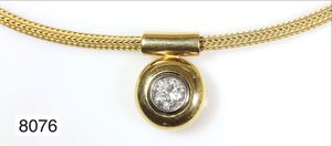 Goldkette(Fox Schlauch) & Klasischer Brillantanhänger, GG 750/000, Brillant 0,83 ct graviert, weiß/piquet, Kettenlänge ca. 41,5 cm, ca. 12,3 g, Anhänger ca. 10,1 g