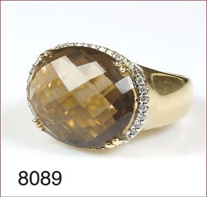 Ring, GG 585/000, dekorativer Rauchquarz, 42 Diamanten, weiß/P1,gesamt 13,8 g, RW ca. 58