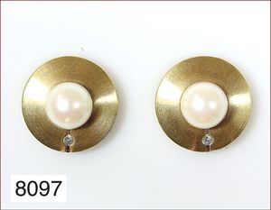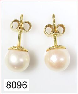 Akoja-Perlohrstecker mit Brillanten, weiß, GG 585/000