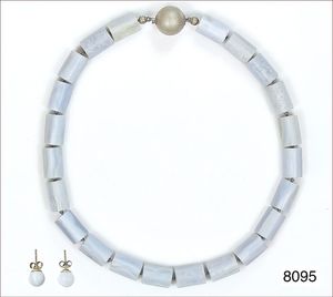 Lot, Calcedonkette ca. 47,5 cm & Stecker Silber 925/000