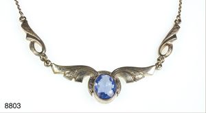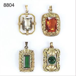 4 Modeschmuckanhänger, farbige Glassteine, 20-60 Jahrer