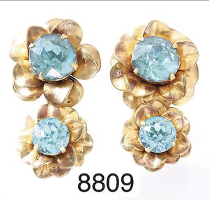 Ohrclips, Modeschmuck, mit 4 blauen Steinen, in Blütenform gefasst