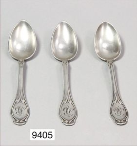 3 Jugendstil Kaffeelöffel mit Monogramm , Silber 800/000, gesamt ca. 93 g
