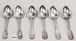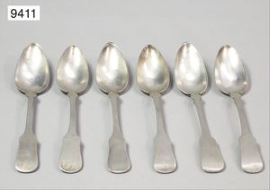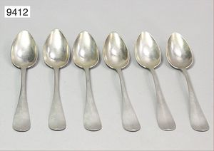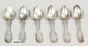 6 Kaffelöffel, Silber 12-lötig, gesamt ca. 172 g