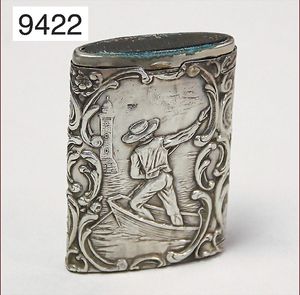 Ausgefallenes Streichholzetui, Silber 800/000, Einsatz Metall, schönes Dekor