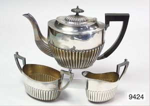 Teekanne mit Ebenholzgriff, Milchkännchen, Zuckerschale, um 1920/30,EP (Elektro Plated)