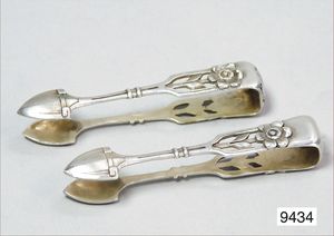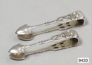 Zwei Jugendstilzangen um 1900, sehr ausgefallen !, Fa. Mayer in Mainz, Silber 800/000, Länge ca. 8 cm