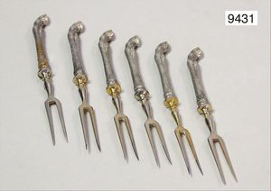 6 Gabeln, Silber 800/000, Bockfüsse