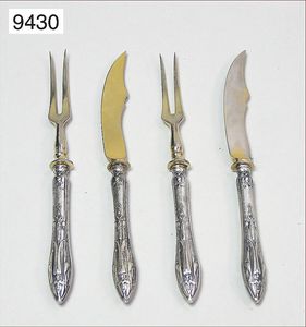 Feines Jugendstil Vorspeisenbesteck um 1900, je 12 Gabeln und Messer, Silber 800/000 teilweise vergoldet, Länge ca. 13 cm, Stahlklingen,( nicht kommplett photographiert !!!! )