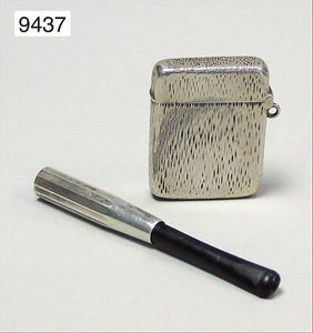Streichholzetui und Zigarettenspitze, Silber 800/000, ca. 1910/20