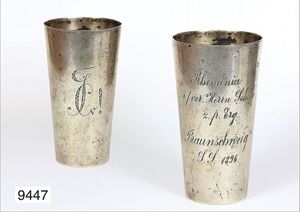 Verbindungsbecher, Rhenania ( Gravur: Rhenania i. /ver. Herrn Schede z. fr. Erg. Braunschweig S.S. 1896 , Rückseite ausgefallenes Monogramm ), Silber 800/000, ca. 91 g