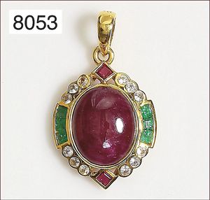 Ring, GG 750/000,1 Saphircab. 1 Rubincab., je ca 0,8 ct, RW ca. 54, ca. 9,1 g