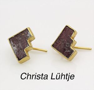 Ohrhänger, CHRISTA LÜHTJE, München, GG 900/000, Rubin-Platte in Treppenform, H = 15,5 mm