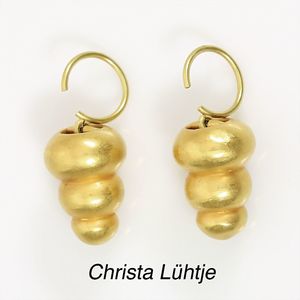 Ohrhänger, CHRISTA LÜHTJE, München um 1999, GG 900/000, plastisch gearbeitete Körper, Ohrbügel beweglich, H = 29,5 mm