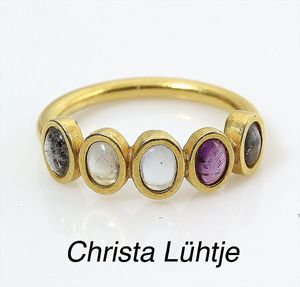 Ring, CHRISTA LÜHTJE, München, GG 900/000, 5- farbige Saphircab., RW ca. 53,5