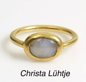 Ring, CHRISTA LÜHTJE, München um 1989, GG 900/000, Stern-Saphircab., ca. 7 x 9 mm, RW ca. 56