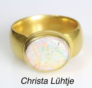 Ring, CHRISTA LÜHTJE, München, GG 900/000, sehr feiner Opal ( Riß durch die Mitte) ca. 11,0 x 13,0 mm, RW ca. 59,5, total ca.16,5 g
