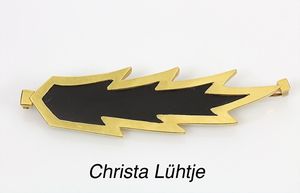 Brosche, CHRISTA LÜHTJE, München um 1987, GG 900/000, Onyx-Platten, L = 94 mm