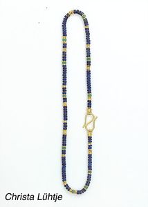 Kette, CHRISTA LÜHTJE, München 80. Jahre, Feingoldplättchen, GG 900/000 (Schließe), Lapis & Chrysoprasscheiben, Innenkette GG 585/000 Fuchsschwanz, L = 39,5 cm, ( DM 2900,-)