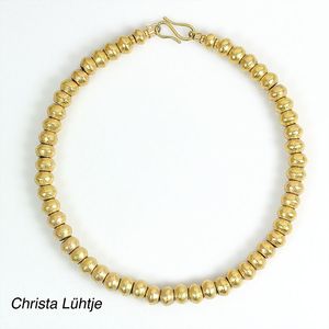 Kette, CHRISTA LÜHTJE, München, Feingold-Plättchen, GG 900/000 (Schließe), Onyx-Linsen im Verlauf, Innenkette GG 585/000 Fuchsschwanz, L = 39,0 cm