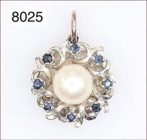 Anhänger, WG 585/000, 1 Akoja-Perle ca. 7,5 mm, 8 Saphire facettiert, (umgearbeitete Schließe)