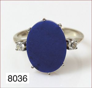 Ring, WG 585/000, Lapis-Platte, 2 Brillanten ca. 0,10 ct weiß, RW ca. 50