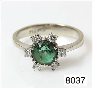 Ring, WG 750/000, Turmalin fac. ca. 1,0 ct, 6 Brillanten ca. 0,18 ct, weiß, RW ca. 51