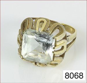 Ring, GG 585/000, Aquamarinachteck, ca 7,5 ct., RW ca. 56