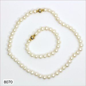 Lot:Süßwasser-Perlenkette & Armband, AG 925/000 (vergoldet) ca 45,5 cm & ca 20,0 cm, D = 9-10,0 mm, beide Ketten als lange Kette zu Tragen