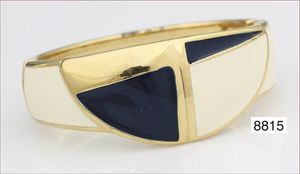 Massiv gearbeitete Armspange von TRIFARI, USA (signiert), Emailleauflage in blau u. cremefarben, sogenannter "Modernist Style", Innenmaß: 59,5 x 46,5 mm