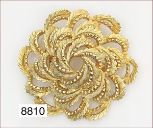 Große runde Brosche, signiert Corocraft (Coro, USA), 60er Jahre, plastische Ausführung, mattes goldfarbenes Metall, gemusterte Oberflächenstruktur