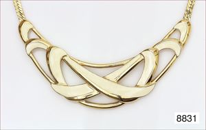 Goldfarbenes Collier, glänzende Schlangenkette mit einem cremefarbenen, emailierten Mittelteil, von TRIFARI (signiert), USA, 60er Jahre, L = 48 cm
