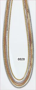 Längere, fünfreihige Wasserfall-Kette in drei Goldtönen (Weiß, Gelb und Rot), von Grosse Pforzheim (signiert Grosse - Germany - 1972), klassische Form, glänzende Oberfläche, innere Kette: L = 59 cm