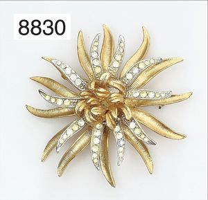 Blumen-Brosche, signiert Corocraft (USA), 50er Jahre, plastische Ausführung in Mattgold und silberfarben, mit klarem Strassbesatz, D = 61 mm