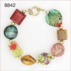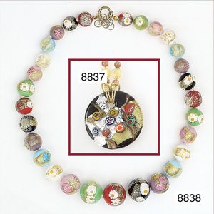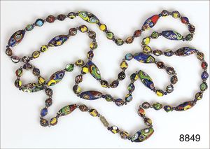 Millefiori-Kette, Glas u. Metallelemente, Mitte 20.Jhd., L = 126 cm