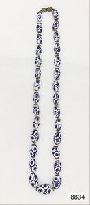 Goldfarbenes, Collier von Grosse (Henkel & Grosse,Pforzheim), sig. mit der Jahreszahl 1966, klassisches Goldband mit goldfarbigen Elementen und königsblauen gefassten Steinen, L = 41,5 cm