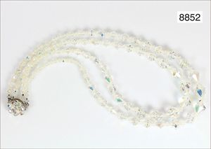 Glas-Kette, Metall, doppelreihig, leicht opalisierendes Glas, Kette im Verlauf, L = 60 cm