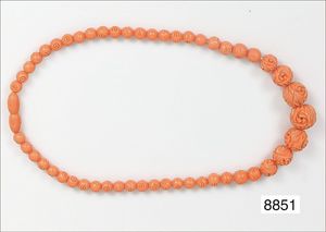 Kette graviert, 1.Hälfte 20.Jhd., Kunstoff (Bakelit ?), D = 7,9- 17,4 mm, L = 46 cm